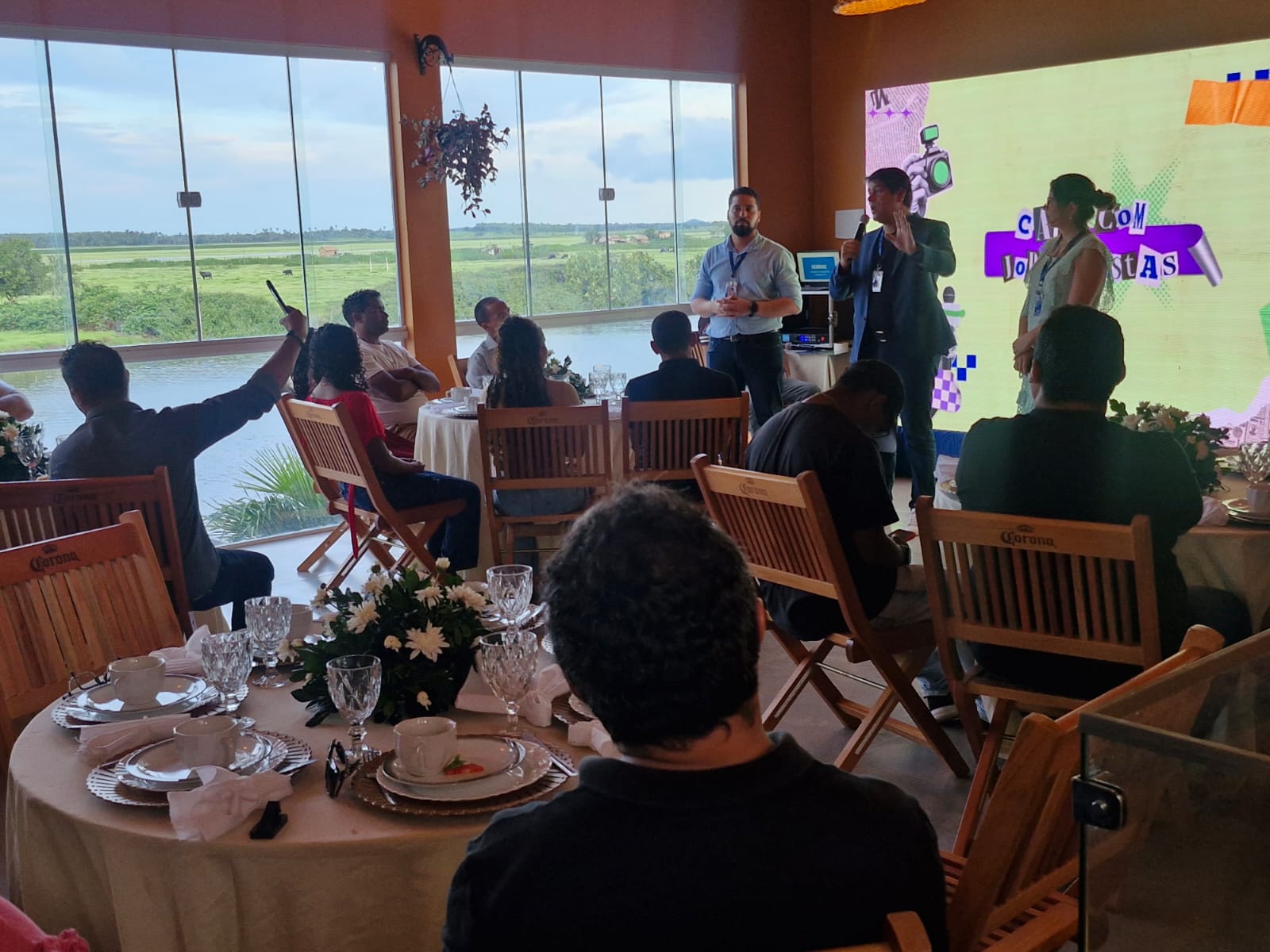 Um encontro de troca e conexão – Mais do que um café, o momento foi marcado pela valorização do diálogo entre profissionais que vivem o dia a dia da comunicação. O momento ganhou um toque a mais com uma vista privilegiada: em um ambiente acolhedor às margens do Rio Pericumã, um dos principais afluentes da Baixada Maranhense.